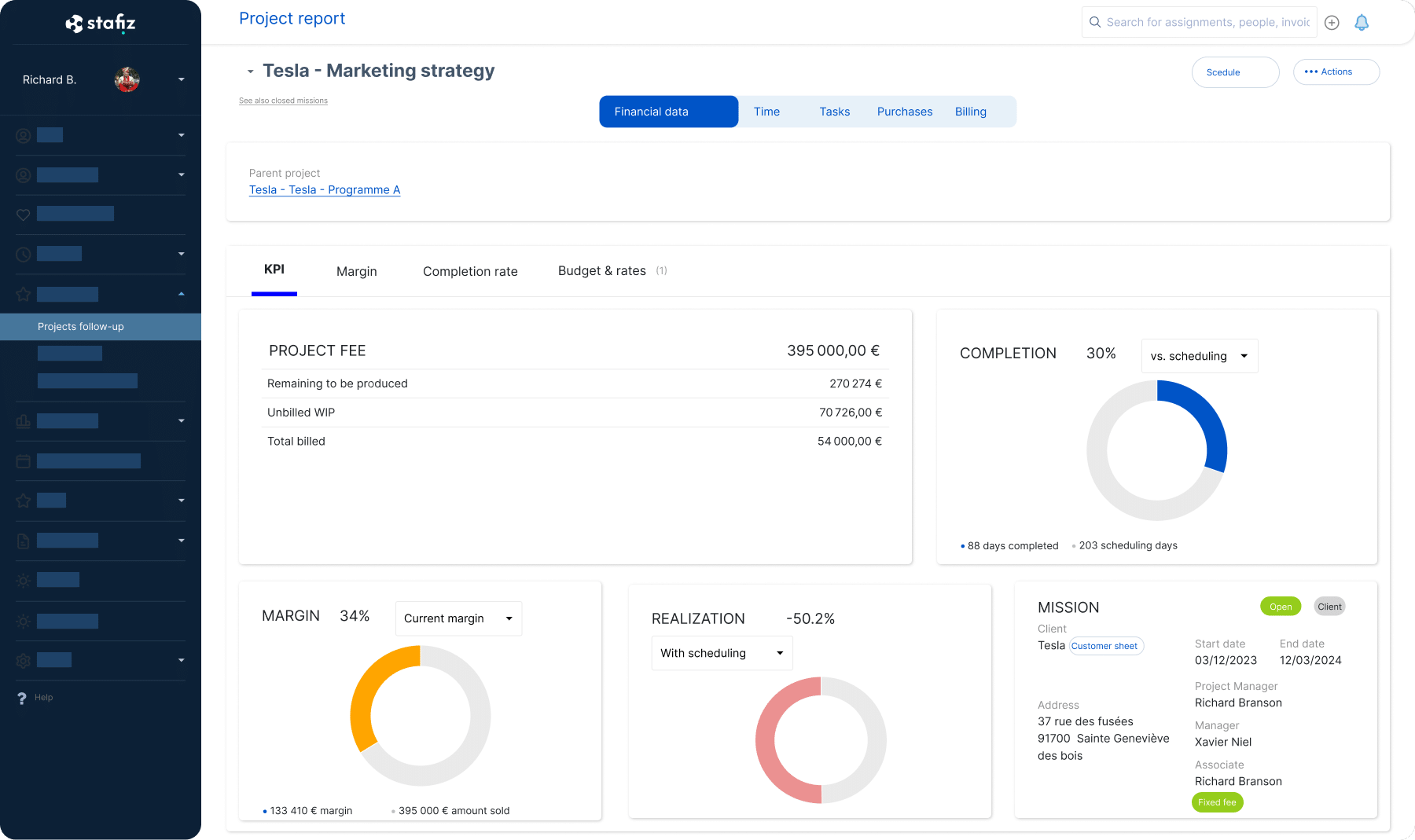 That said, strategically chosen, collected and analyzed KPIs will allow you to manage your activities in order to adapt your strategy. At Stafiz, we have taken all these criteria into account in order to build a complete, flexible and efficient product for your project management.