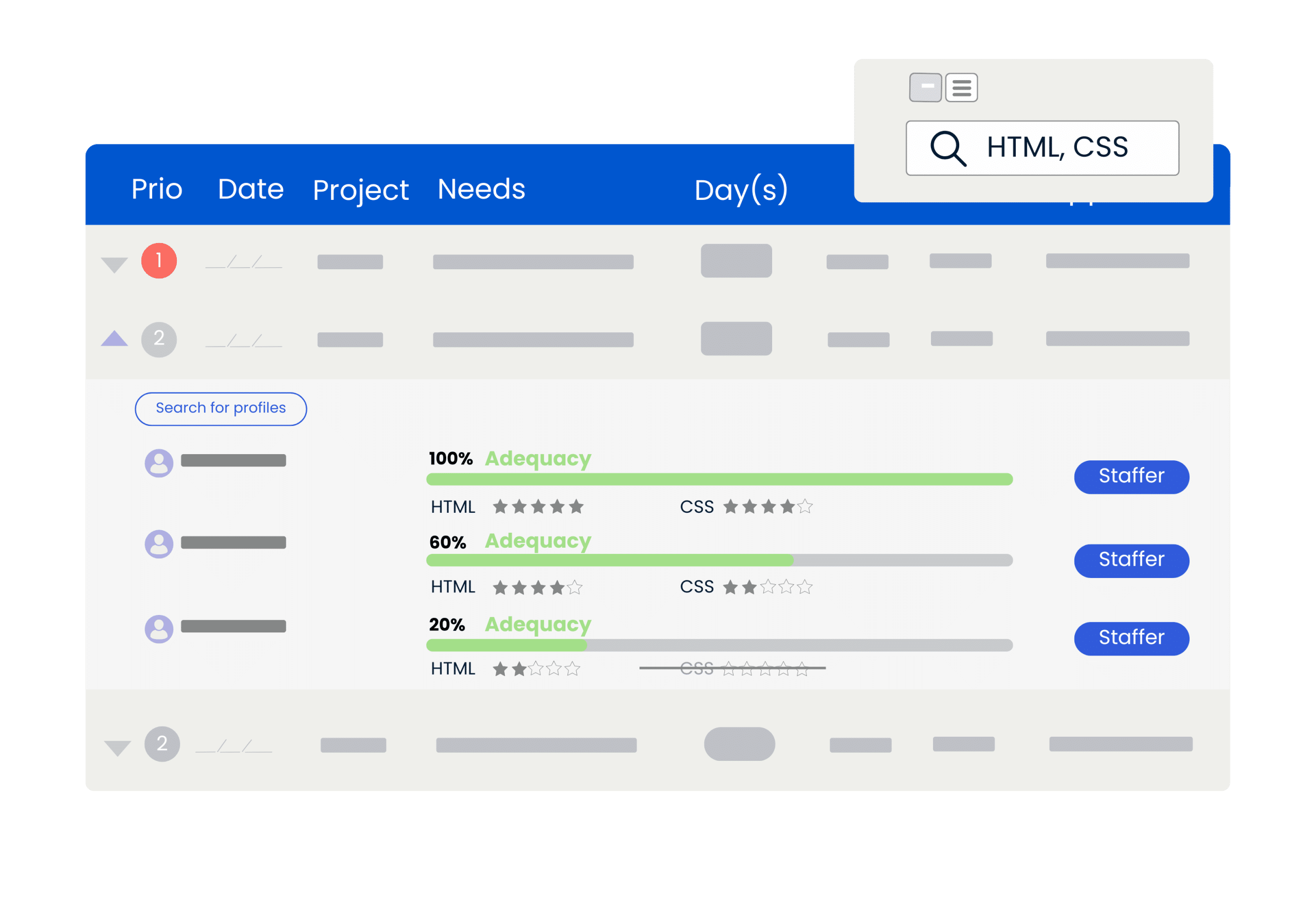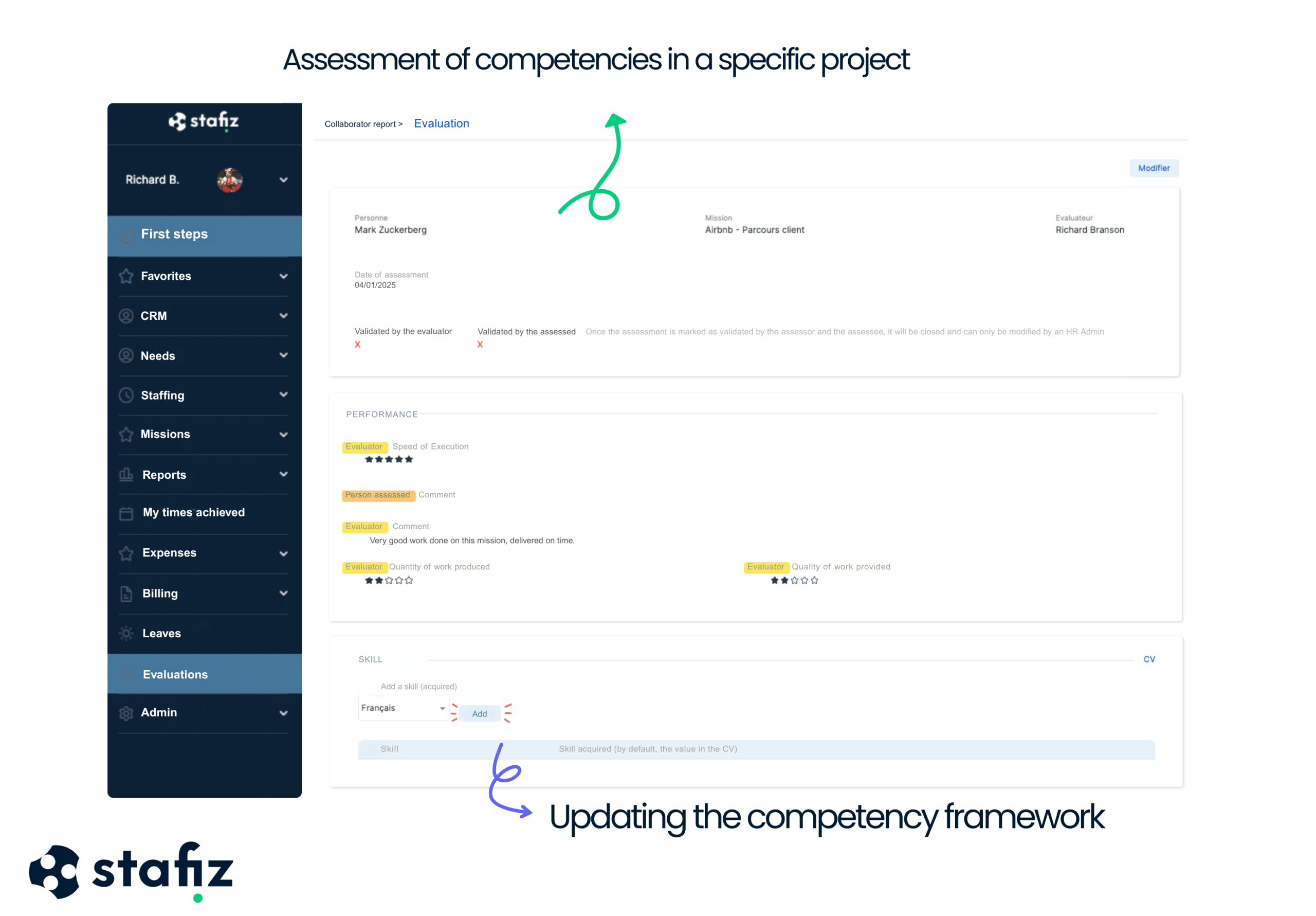 To make sure you find the balance you're looking for, you can use a skills management tool. Stafiz, an all-in-one solution designed to improve sourcing and marketing management. resource planning, offers a feature that allows you to identify the most suitable profiles for each project.