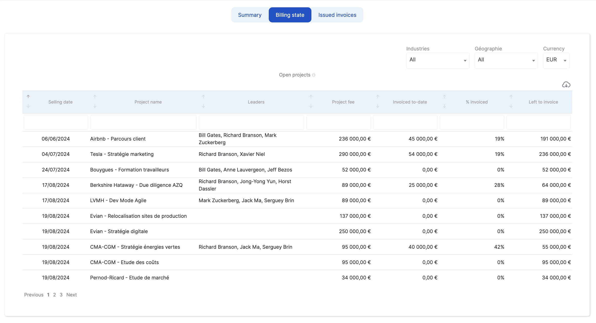 Also equipped with advanced project accounting functions, Stafiz manages different modes of turnover recognition to allow you to analyze your activity.