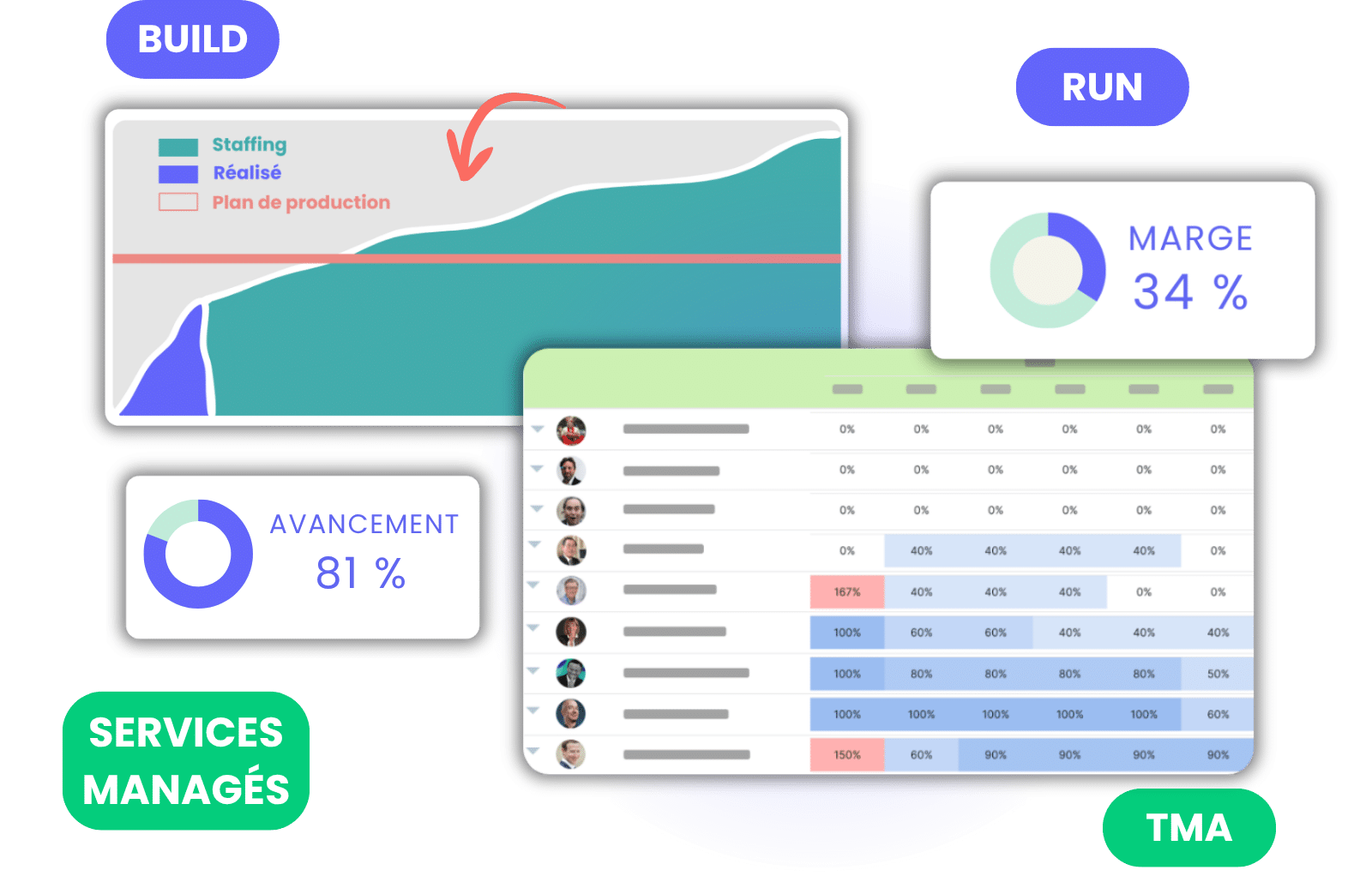 En las empresas de consultoría y servicios de TI, el éxito de un proyecto depende en particular de una orquestación perfecta de empleados, calendarios y control de gestión de tus distintos tipos de proyectos: construcción, operación, TMA, servicios gestionados, etc.